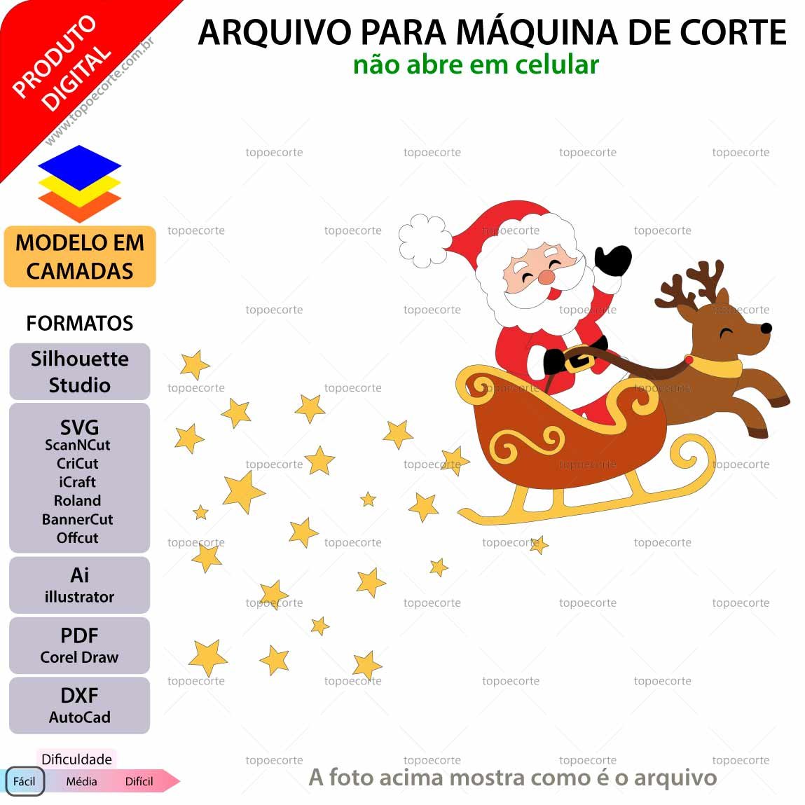 Topo de bolo Natal - Noel no trenó Arquivo Silhouette, Arquivo ScanNCut, Arquivo SVG, DXF, Ai, Eps, PDFARQUIVO Topo de bolo Natal – Noel No Trenó