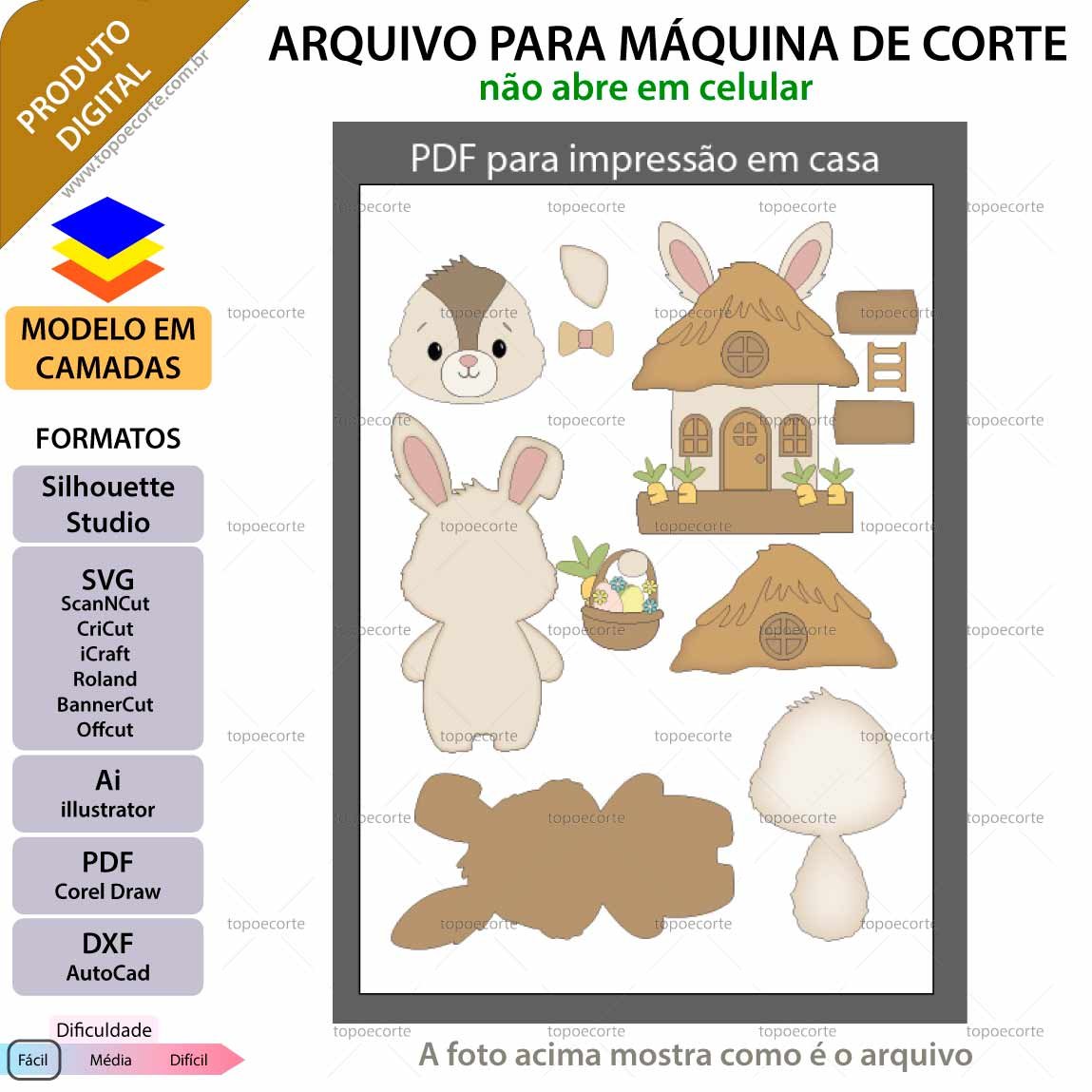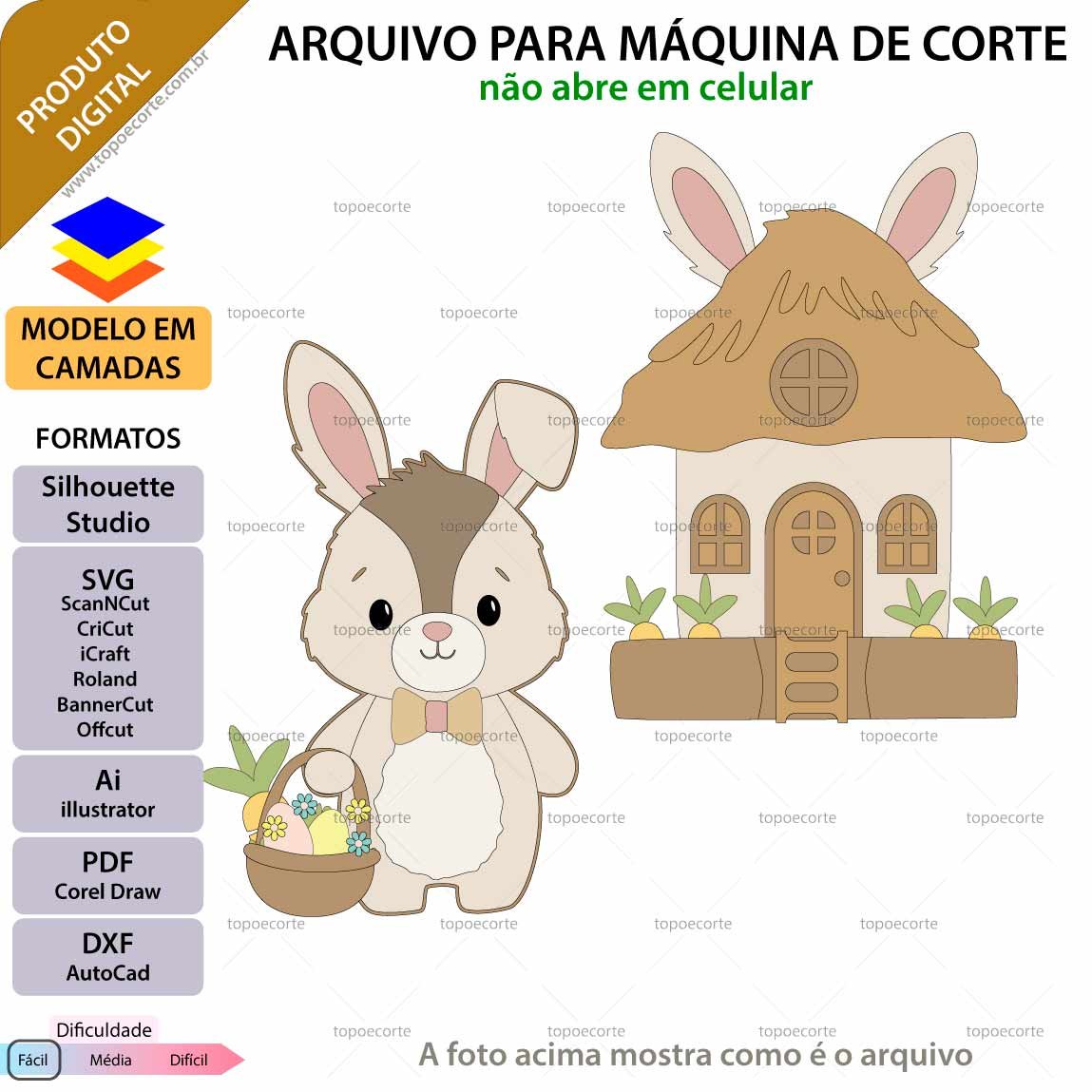 Após o pagamento, você receberá um e-mail com o link para acesso ao arquivo de ARQUIVO Topo de bolo Páscoa Coelhinho Casinha em seu perfil, contudo, este e-mail pode ir para pasta de spam.