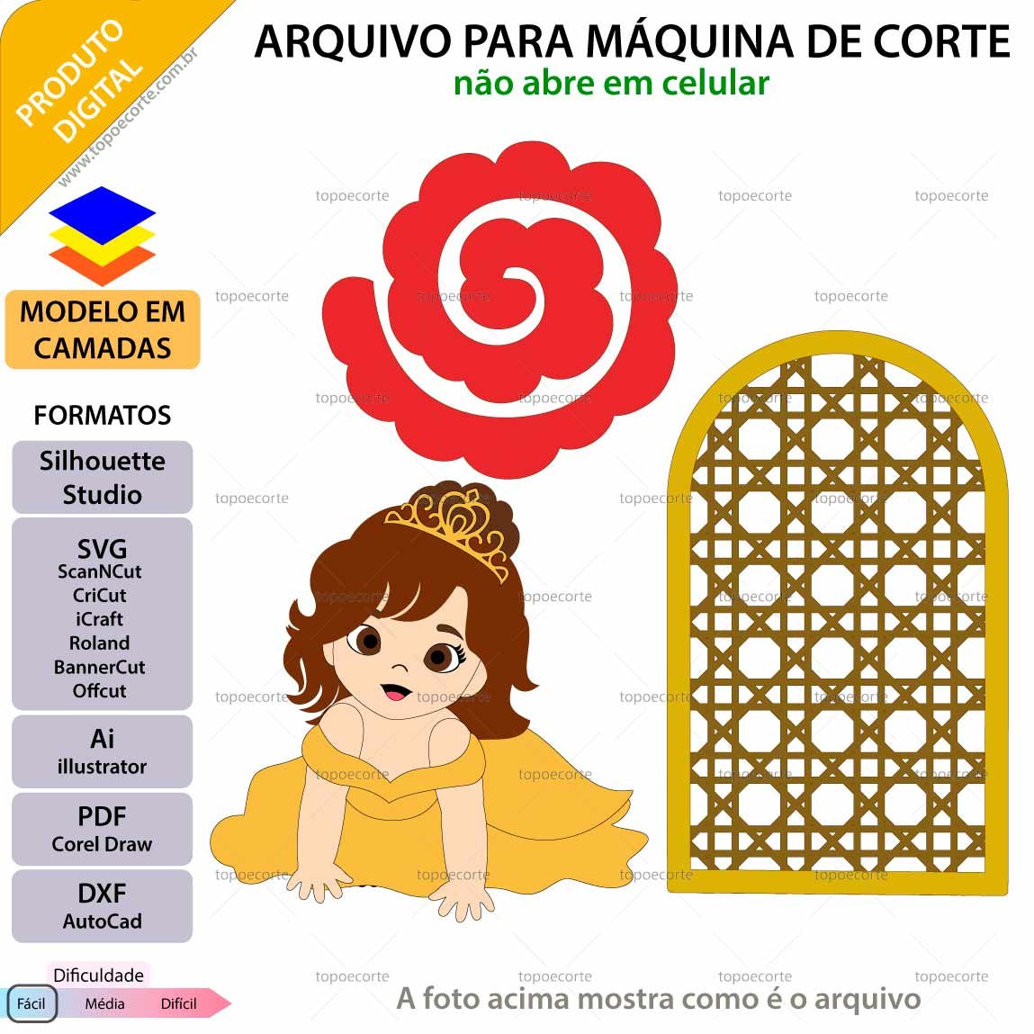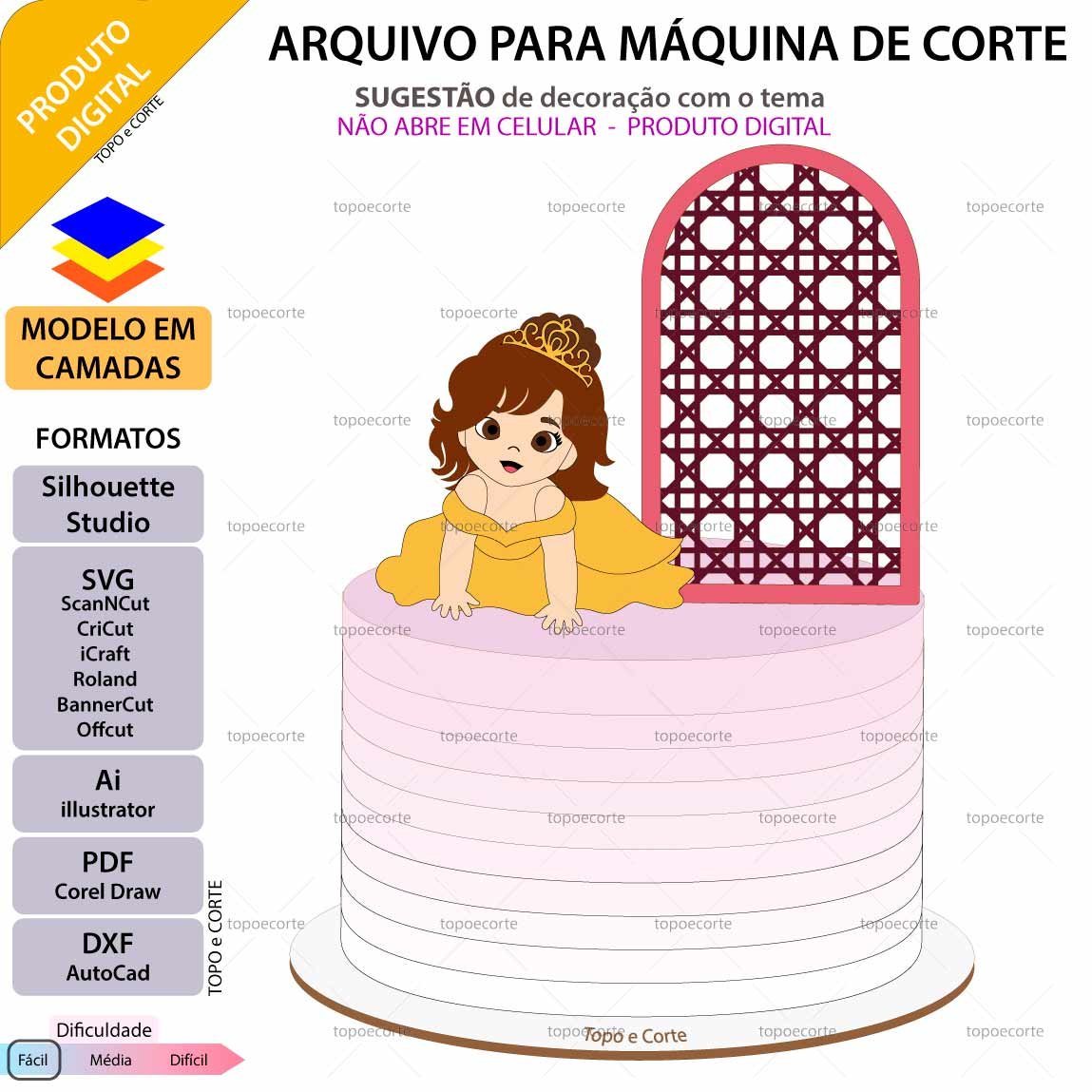 Após o pagamento, você receberá um e-mail com o link para acesso ao arquivo de ARQUIVO Topo de bolo Bebê Inspirada Bela Com Vestido